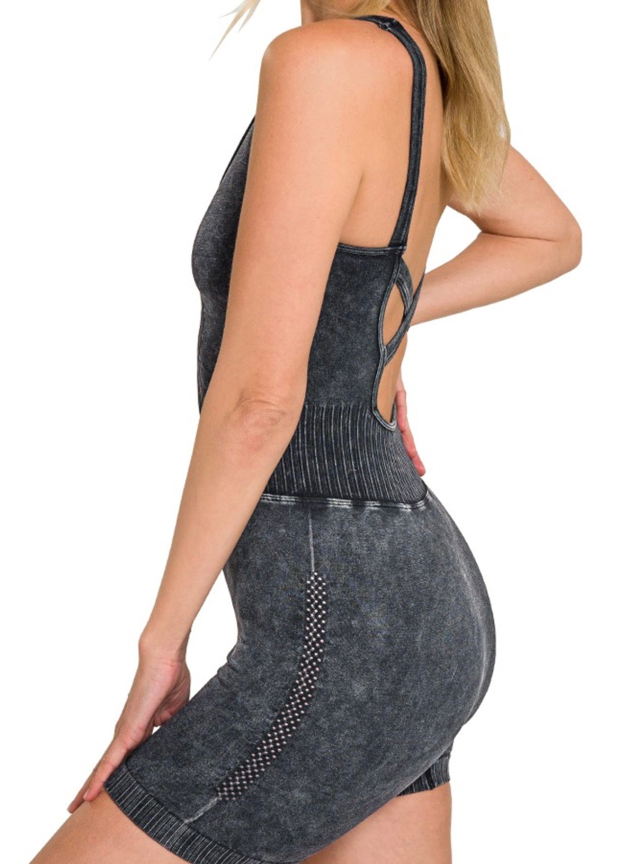 Washed rompers, very comfortable and super stretchy! Perfect for a hot summer days. Could style it with a oversized tee shirt on top.