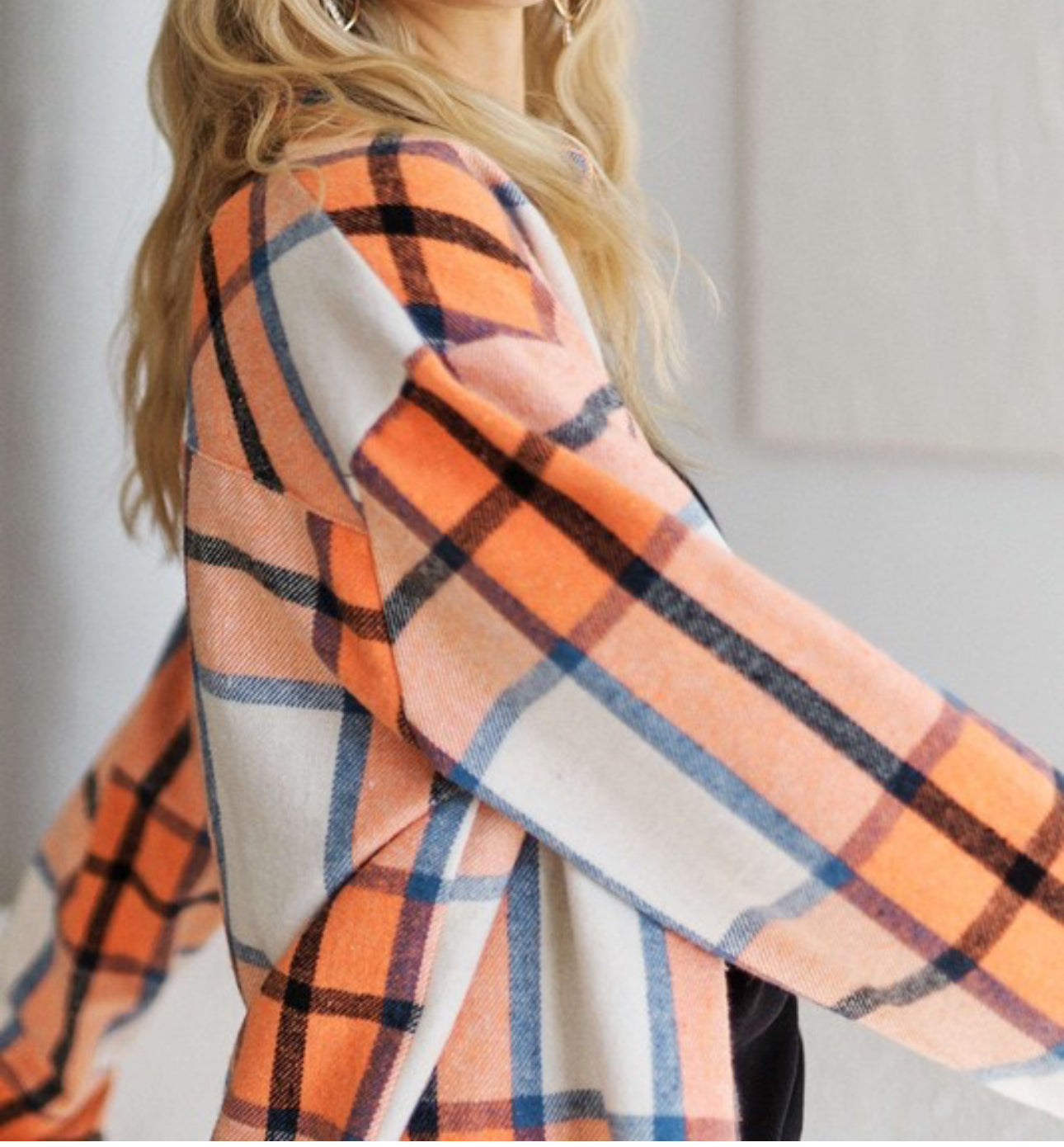 Long sleeves boyfriend flannel shacket, very pretty colors for the fall time.