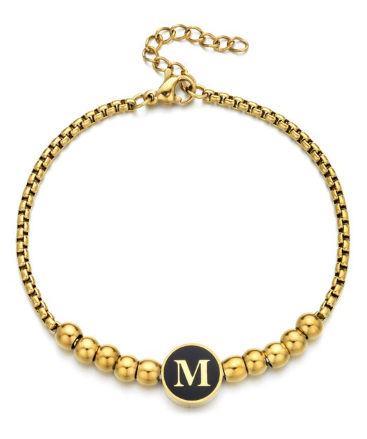 Non Tarnish stainless steel beaded bracelet. Water proof gold plated 7” long